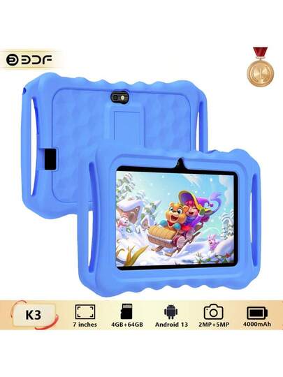 4GB RAM+64GB ROM/7英寸儿童平板电脑/四核1.3GHz/安卓13 MTK8321/1280x800 IPS高清分辨率IPS屏幕/2MP+5MP摄像头/4000mAh大电池/支持WiFi家长控制教育游戏/采用ABS塑料+硅胶BDF K3儿童教育平板电脑(包含:包装盒/数据线/说明书/OTG/卡针) - 彩色 - 查看 1