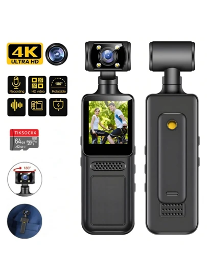 4K 口袋运动相机,1080P 高清可穿戴摄像机,配备 4K 屏幕、WiFi、录音机、USB 充电、180° 旋转、手持稳定器、夜视,适用于生活记录、旅行、视频博客、直播和户外探险 - 送给情侣、返校或复活节的绝佳礼物 - 彩色 - 查看 12