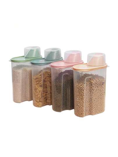 4PCS Cereal Storage Containers 2.2L Airtight Food Storage Container With Spout For Kitchen Plastic Dry Food Dispenser Containers With Measuring Cup For Cereals Rice Pet Food Dry Food - 2.2升 - 查看 1