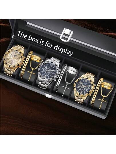 4 件/12 件时尚男士商务石英表套装,含吊坠项链 + 手链 + 戒指,多种颜色可选,适合日常外出、聚会、生日、父亲节、感恩节和节日礼物 - 彩色 - 查看 5