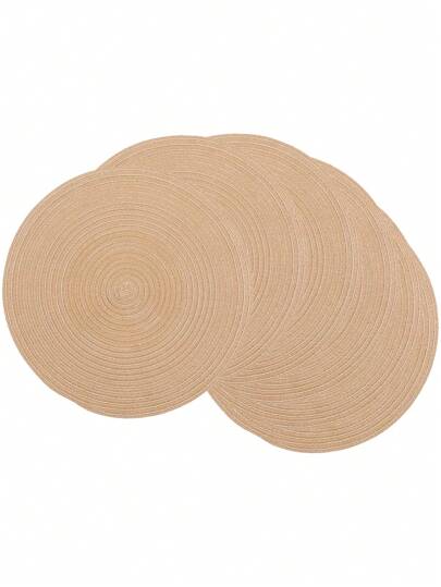 4 件/6 件/8 件/15 英寸圆形编织餐垫套装,可洗,适合家庭聚会、婚礼、派对(卡其色) - 卡其色 - 查看 4