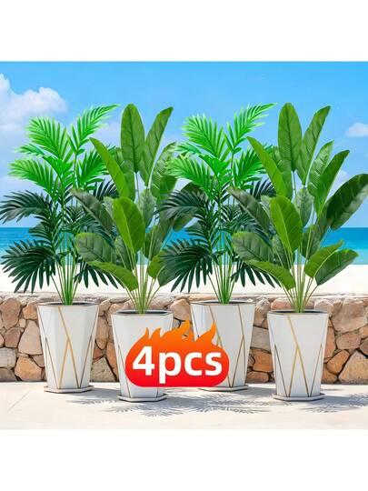 4 株人造绿植,美丽逼真的假植物,适用于家居装饰、办公室、婚礼、酒店、花园、摄影、户外庭院装饰,适合周年纪念、父亲节、母亲节、毕业季、六月节、室内/室外装饰 - 不含容器 - 綠色 - 查看 10