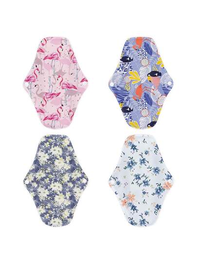 4 件裝竹炭布月經墊/可重複使用衛生/媽媽內褲襯墊常規流量隨機顏色