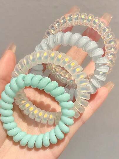 4 件蓝色和绿色螺旋发带,光滑表面多功能通勤发饰,马尾辫夹,发圈,发绳 - 4pcs藍綠色系電話線發圈 - 查看 1