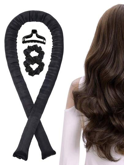 4 件巧克力棕色纯色发圈、卷发棒、鱼尾辫工具套装 - 无需加热卷发器、发饰、发饰、学校用品、 - 黑色 - 查看 1