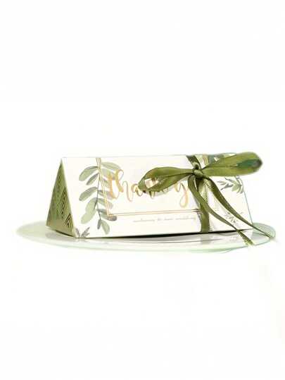 4 件欧式绿叶丝带三角盒结婚糖果盒婚礼季订婚盒手工折叠糖果盒,婚礼派对礼品袋,婚礼纪念品手提包, - 彩色 - 查看 1