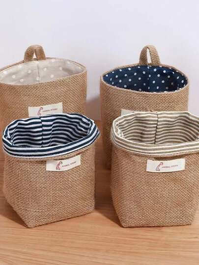 4个可折叠亚麻布壁挂式收纳袋,适用于桌面、墙壁、门、衣柜、家居装饰 - 彩色 - 查看 1