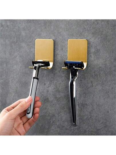 4 件裝金色不鏽鋼刮鬍刀架,黏性浴室刮鬍刀收納架 - 金色 - 查看 1