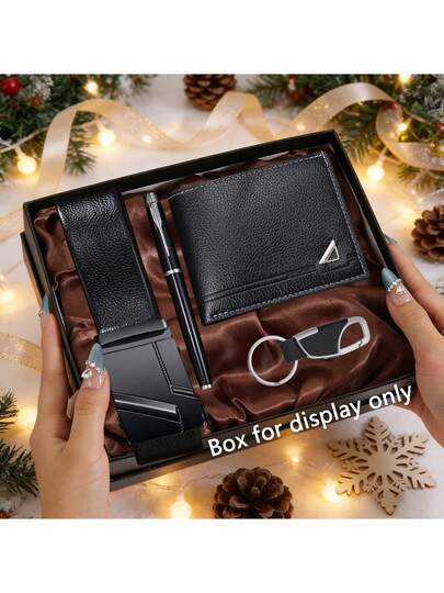 男士钱包+男士皮带四件套,日常搭配使用,父亲节礼物,复古时尚商务百搭男士钱包,适合作为节日礼物,如圣诞节、情人节、生日(不含礼盒) - 黑色 - 查看 1