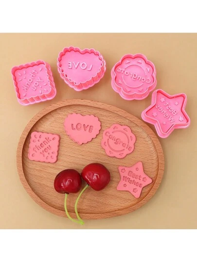 4入組粉紅色婚禮曲奇模具,3d彈簧模具,心形/花邊/五星形,巧克力曲奇印模,翻糖黏土製作,蛋糕烘焙工具,diy廚房配件