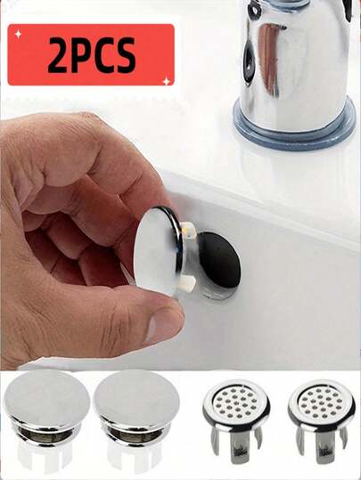 4 件装塑料浴室厨房水槽溢水盖替换件,镀层圆形排水盖,水槽配件