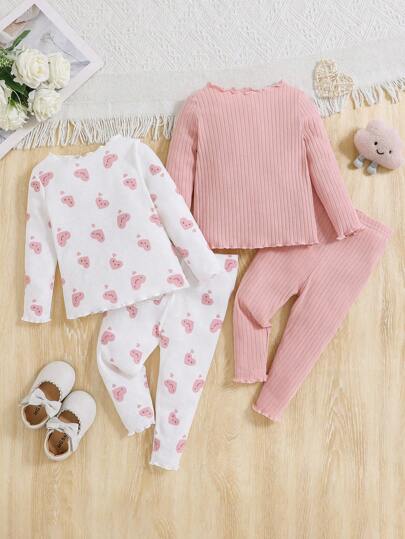 4件套女婴休闲花卉针织长袖上衣和裤子套装 - 彩色 - 查看 1