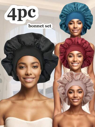 4 件套经典纯色女士帽,舒适弹性睡帽,帽套装,丝绸染色羊毛帽。 - 彩色 - 查看 1