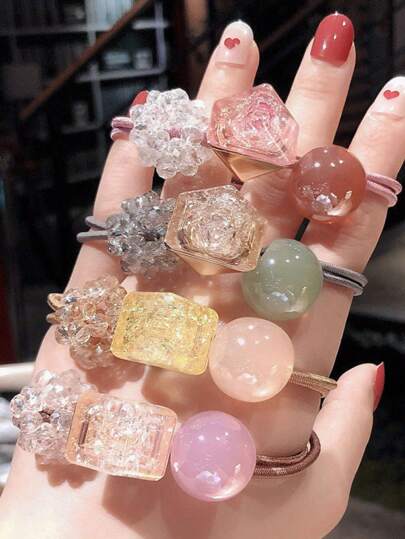 4件套精致高端女士发圈,弹性马尾发圈,也可作手链使用,适合各种发质,波西米亚风情人节发圈,发绳,发圈,发饰,头饰,健身运动跑步装备 - 彩色 - 查看 10