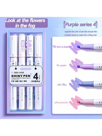 4 支/套闪亮荧光笔,适合学生、办公室工作人员。具有极高的记笔记、标记、绘图价值 - 紫色盒子 - 查看 4