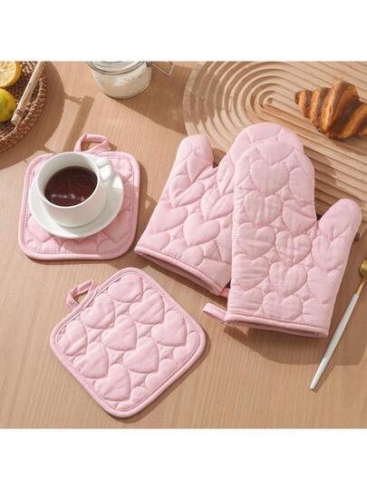 4 件套长/短鸭嘴和心形烤箱手套和锅垫,超厚且耐热高达 500 度,厨房套装 - 彩色 - 查看 10