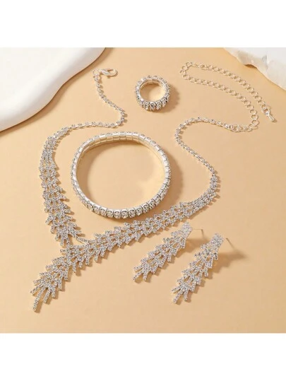4件套项链耳环首饰套装,适合派对礼服、时尚新娘配饰和情人节配饰 - 白色 - 查看 1