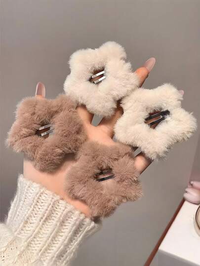 4件套毛绒星星发夹,柔和的米色和棕色色调 - 适合女孩和女士,可将任何发型打造成美丽温暖的亮点。适合日常、派对或外出,让您的秀发闪耀迷人光泽,爪夹、发夹、发夹、发夹、发饰、冬季配饰