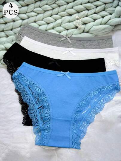 4 件性感蕾丝舒适镂空内裤 - 彩色 - 查看 1