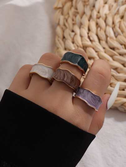 4入組波浪狀設計開口戒指 - 彩色 - 查看 4