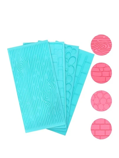 4件套塑料浮雕巧克力蛋糕模具套装 - 砖块、木纹、鹅卵石和鹅卵石图案 - 蓝色3D装饰浮雕模具套装,适用于糖果、装饰、果冻和DIY烘焙 - 綠色 - 查看 3