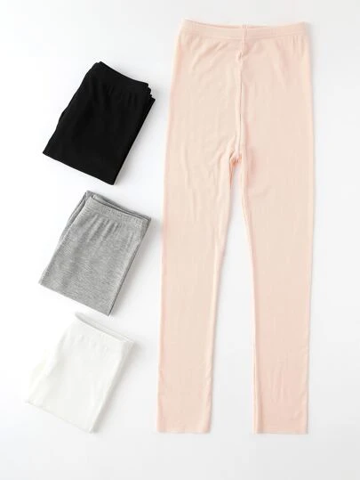 4入組兒童純色束口腰型七分打底褲(可調節長度) - 彩色 - 查看 1