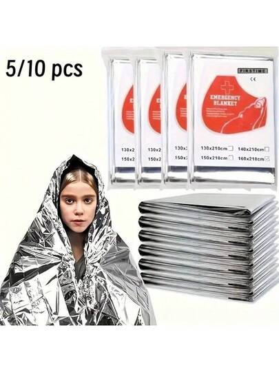 5/10 件装户外保暖毯,双面银色保暖毯,便携式急救应急生存毯,适用于露营和救援,适用于应急工具包 - 銀色 - 查看 1