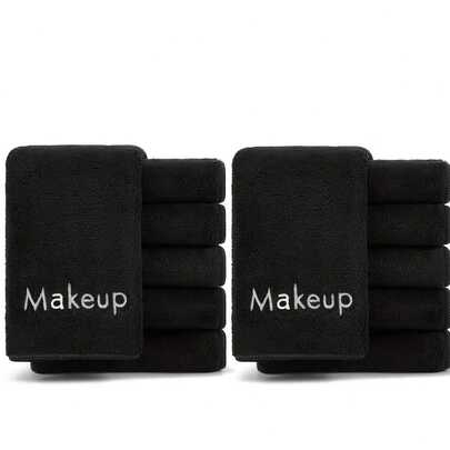 5/10条装超柔软可重复使用化妆巾,吸水性强,刺绣图案,女士浅米色,现代风格,灰色/粉色/黑色