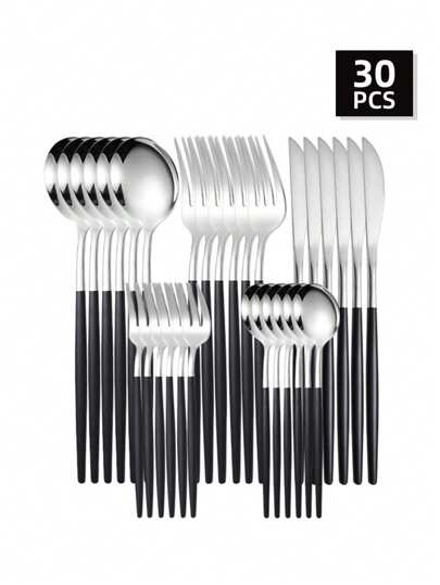 5/20/30 件不锈钢葡萄牙刀叉勺餐具套装适用于家庭、酒店、婚礼、节日礼物、厨房、圣诞礼物、学校用品 - 黑色 - 查看 1