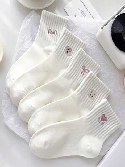 5/9 双女士可爱蝴蝶结花朵短袜,学院风,舒适柔软透气,简约百搭,适合日常、运动、休闲穿着,春夏秋季 - 白色 - 查看 5