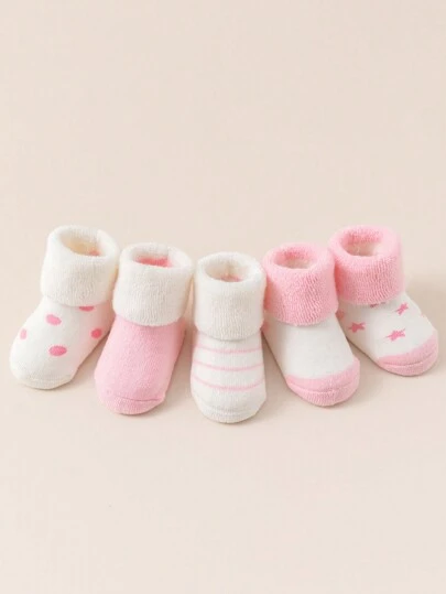 5双装粉色优质女婴保暖袖口袜 - 彩色 - 查看 7