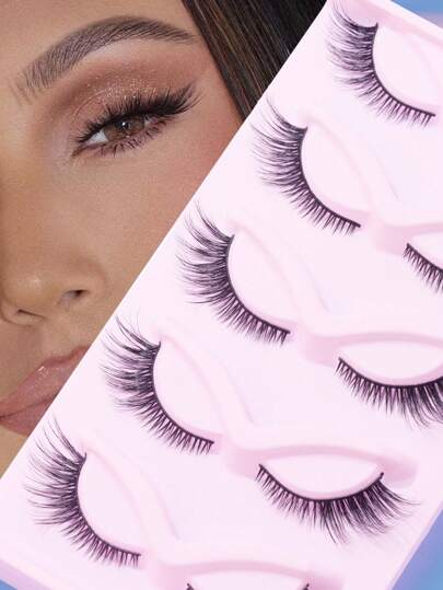 5对加长卷翘动漫狐狸眼款假睫毛,16毫米条状假睫毛,睫毛,假睫毛 - 黑色 - 查看 5