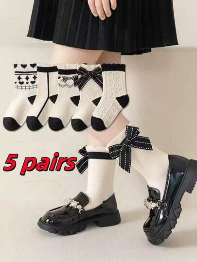 5 双女童蕾丝边蝴蝶装饰公主薄款中筒袜,适合聚会 - 彩色 - 查看 10