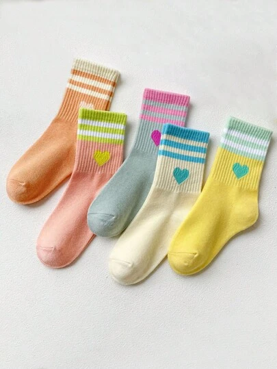 5双装心形条纹提花儿童中筒袜 - 彩色 - 查看 1
