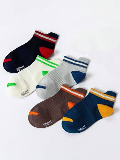 5 双儿童撞色网眼运动短袜 - 彩色 - 查看 1