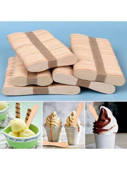 50/100 件冰淇淋木棒、一次性冰棒棒糖棒、DIY 冰淇淋勺、工艺棒棒糖和蛋糕棒 - 杏色 - 查看 1
