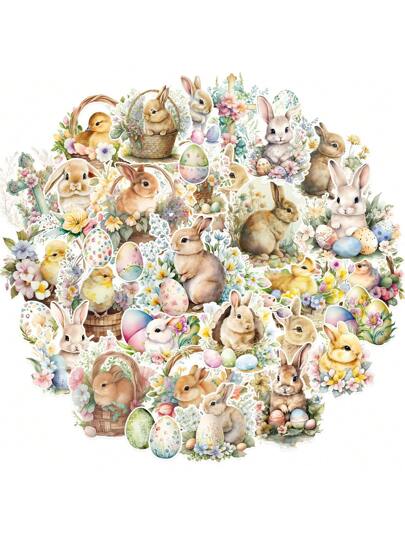 50入組復活節兔子彩蛋貼紙,可愛的復活節假日貼紙,適用於水瓶、筆記本電腦、手機、剪貼簿、日誌等diy手工藝品 - 彩色 - 查看 1
