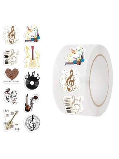 500张音乐主题贴纸卷,10种款式,音乐美学派对礼品,音乐爱好者贴纸,防水乙烯基贴纸(每卷500张) - 彩色 - 查看 1