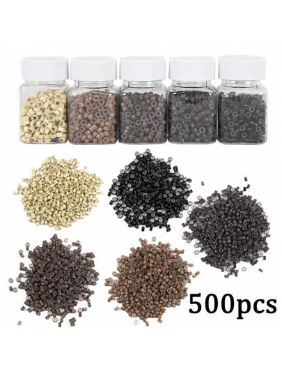 500 件接发微型环链珠,5 毫米硅胶内衬珠,适用于真人接发工具 - 多色 - 彩色 - 查看 1