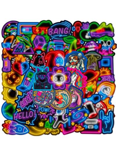 50入組卡通霓虹貼紙-酷炫可愛防水乙烯基膠裝飾貼紙適用於筆記型電腦,水瓶,電腦和手機-適合嬰幼兒和成年人萬聖節/聖誕節禮物 - 50 pcs - 查看 1