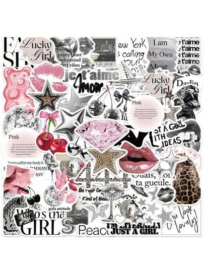 50Pcs Silver Lucky Stickers Aesthetic Stickers Y2k Stickers Y2K Downtown Sticker Y2k Gifts Groovy Stickers 90s Stickers Vinyl  Stickers For Envelope,Water Bottle,Computer,Laptop,Phone,Luggage,Notebook,Fridge - 彩色 - 查看 10
