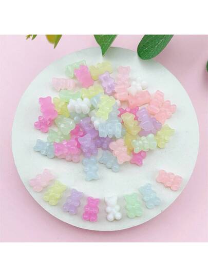 50颗8mm*12mm亚克力迷你彩色小熊珠,颜色随机,适合制作珠宝 - 彩色 - 查看 1