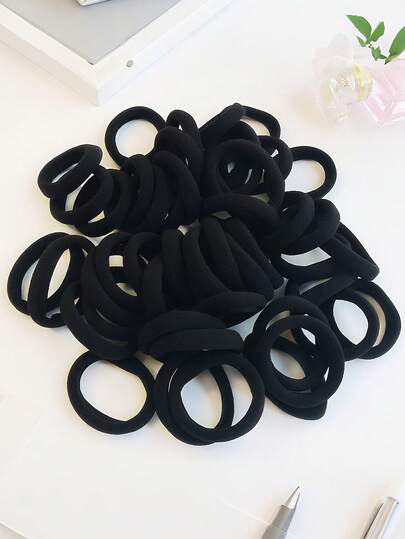 50 件黑色发圈,弹性橡胶发圈,女士纯色马尾辫夹,发饰,高弹力毛巾发圈,多用途发圈,用于发型设计 DIY 配件,发圈,发圈,发绳 - 彩色 - 查看 1