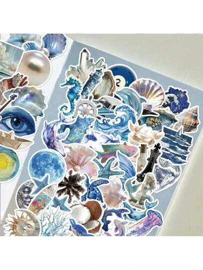 50 张蓝色海洋主题贴纸,适用于吉他、笔记本、行李箱 DIY 装饰、学校用品、返校 - 查看 1