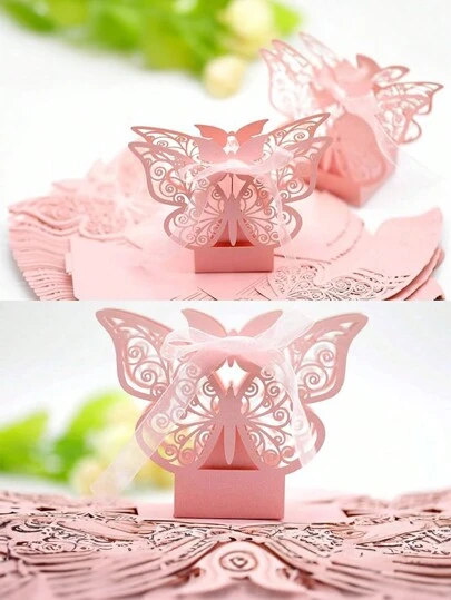 50 件可爱蝴蝶糖果盒和巧克力包装礼品袋适用于婚礼、结婚、生日、洗礼、派对装饰、廉价物品、小型商务用品、婚礼装饰学校用品食品袋食品盒适用于糖果巧克力饼干等。 - 粉色 - 查看 1