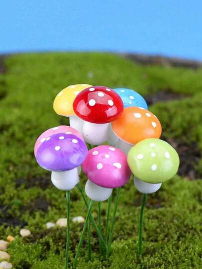 50 件迷你蘑菇微型模型人造花花园仙女盆栽树脂工艺品家居装饰 DIY 微景观装饰 - 彩色 - 查看 10