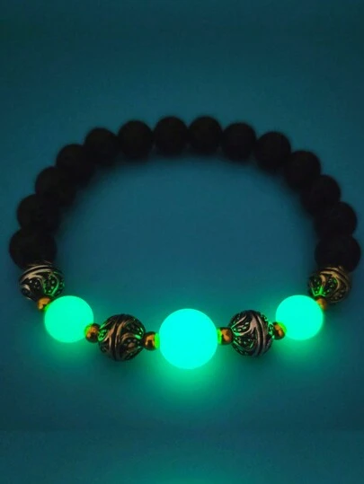 50入組新款熔岩石瑜伽珠手鍊,具夜光效果,流行彈性手帶
