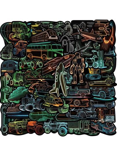50入組/包霓虹繪畫防水diy創意塗鴉貼紙,適用於筆記本電腦手機殼吉他滑板玻璃瓶杠安全帽雪板行李箱冰箱門窗家庭塗鴉裝飾貼紙 - 彩色 - 查看 10