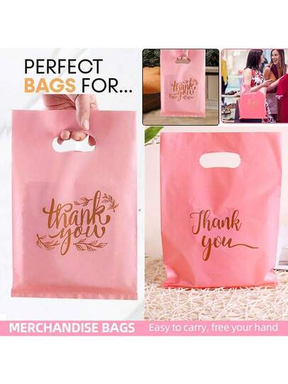 50个粉色“谢谢”礼品袋,婚礼生日派对礼品包装袋,感谢包装袋