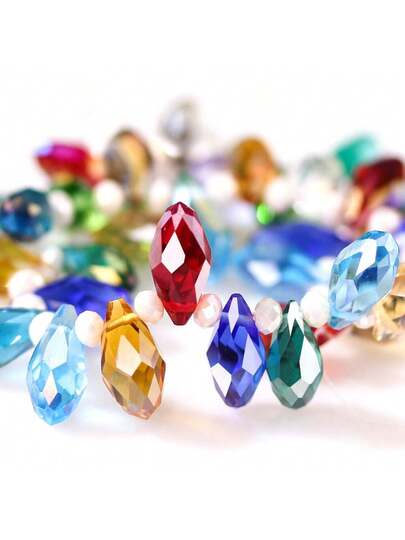 50入組/套鍍層掉落形玻璃水晶珠,帶水平孔,多色多角剔透珠子,適用於手鍊和項鍊diy,尺寸包括5x7mm 6x12mm 8x13mm - 彩色 - 查看 73